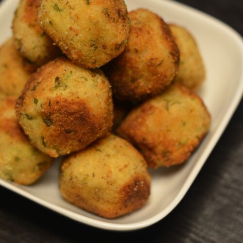 These arancini make a great appetizer and are perfect served with some marinara sauce on the side (I used some pasta sauce I had left over in the fridge from the previous week).